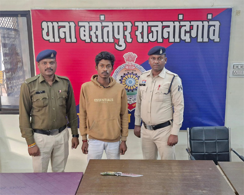 राजनांदगांव। बसंतपुर थाना पुलिस ने 25 नवंबर को एक ऐसे आरोपी को गिरफ्तार किया, जो शीतला माता मंदिर नंदई चौक के पास हाथ में चाकू लेकर आम लोगों को डराता-धमकाता था। आरोपी के कब्जे से पुलिस ने 01 नग धारदार चाकू बरामद किया।