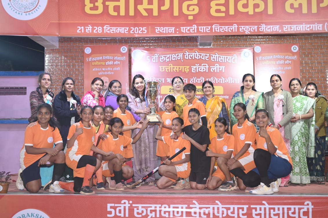 राजनांदगांव। रुद्राक्षम् वेलफेयर सोसाइटी द्वारा आयोजित 5वीं छत्तीसगढ़ हॉकी लीग अखिल भारतीय हॉकी प्रतियोगिता के अंतर्गत महिला वर्ग का फाइनल मुकाबला एवं पुरस्कार वितरण समारोह भव्य रूप से संपन्न हुआ। समापन अवसर पर महिला सशक्तिकरण को केंद्र में रखते हुए नारी शक्ति का उत्सव मनाया गया।