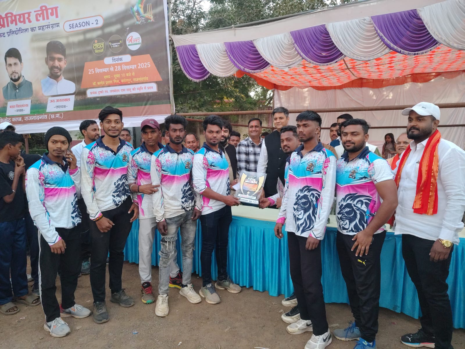 राजनांदगांव। बसंतपुर प्रीमियम लीग का चार दिवसीय क्रिकेट टूर्नामेंट उत्साह और रोमांच के साथ संपन्न हुआ। फाइनल मुकाबले में बाबा साहेब अंबेडकर इलेवन ने शानदार प्रदर्शन करते हुए चंद्रशेखर आजाद इलेवन को हराकर खिताब अपने नाम किया। पूरे टूर्नामेंट के दौरान मैदान पर खिलाड़ियों का जोश और दर्शकों की भारी भीड़ खेल प्रेम का प्रमाण बनी रही।