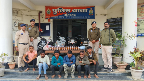 डोंगरगढ़। डोंगरगढ़ पुलिस ने अवैध शराब के कारोबार के खिलाफ बड़ी कार्रवाई करते हुए पांच अलग-अलग प्रकरणों में 6 आरोपियों को गिरफ्तार किया और भारी मात्रा में शराब बरामद की। पुलिस ने 141 पाव सीजी अंग्रेजी शराब, 25.02 बल्क लीटर शराब और शराब तस्करी में प्रयुक्त 4 दोपहिया वाहनों को जब्त किया। इन सभी की कुल कीमत ₹68,120 बताई गई है।