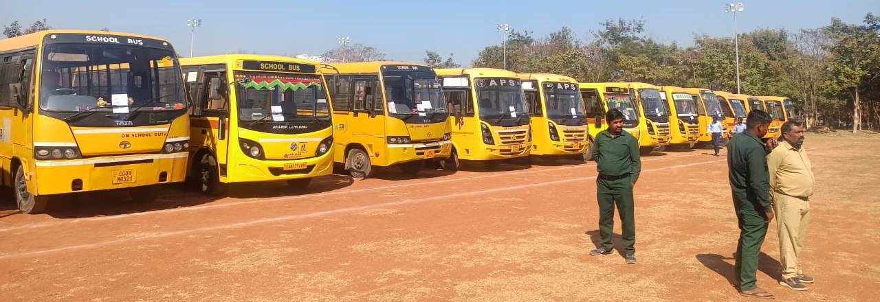 राजनांदगांव। सड़क सुरक्षा माह के तहत पुलिस और परिवहन विभाग ने आज शहर के विभिन्न स्कूलों की स्कूली बसों का संयुक्त निरीक्षण किया। इस दौरान पुलिस अधीक्षक सुश्री अंकिता शर्मा के निर्देशन में, अतिरिक्त पुलिस अधीक्षक श्री पुष्पेन्द्र नायक और अति. क्षेत्रीय परिवहन अधिकारी श्री आनंद शर्मा के मार्गदर्शन में परिवहन स्टाफ एवं यातायात पुलिस ने संस्कार सिटी स्कूल, युगान्तर पब्लिक स्कूल, एरॉन जेस्टसन, यशोदा पब्लिक स्कूल, गायत्री विद्यापीठ, गायत्री गुरूकुल, अजीज पब्लिक स्कूल, एनबीआईएस बोरी, एनपीपीएस, रॉयल किड्स कॉन्वेंट, अधविता पब्लिक स्कूल, स्वामी विवेकानंद, दिल्ली पब्लिक स्कूल, नीरज विद्या मंदिर, आरपीएस स्कूल, सरस्वती शिशु मंदिर डोंगरगढ़ और अनुपम विद्यालय सहसपुर दल्ली की 104 स्कूल बसों का भौतिक सत्यापन और दस्तावेज जांच की।