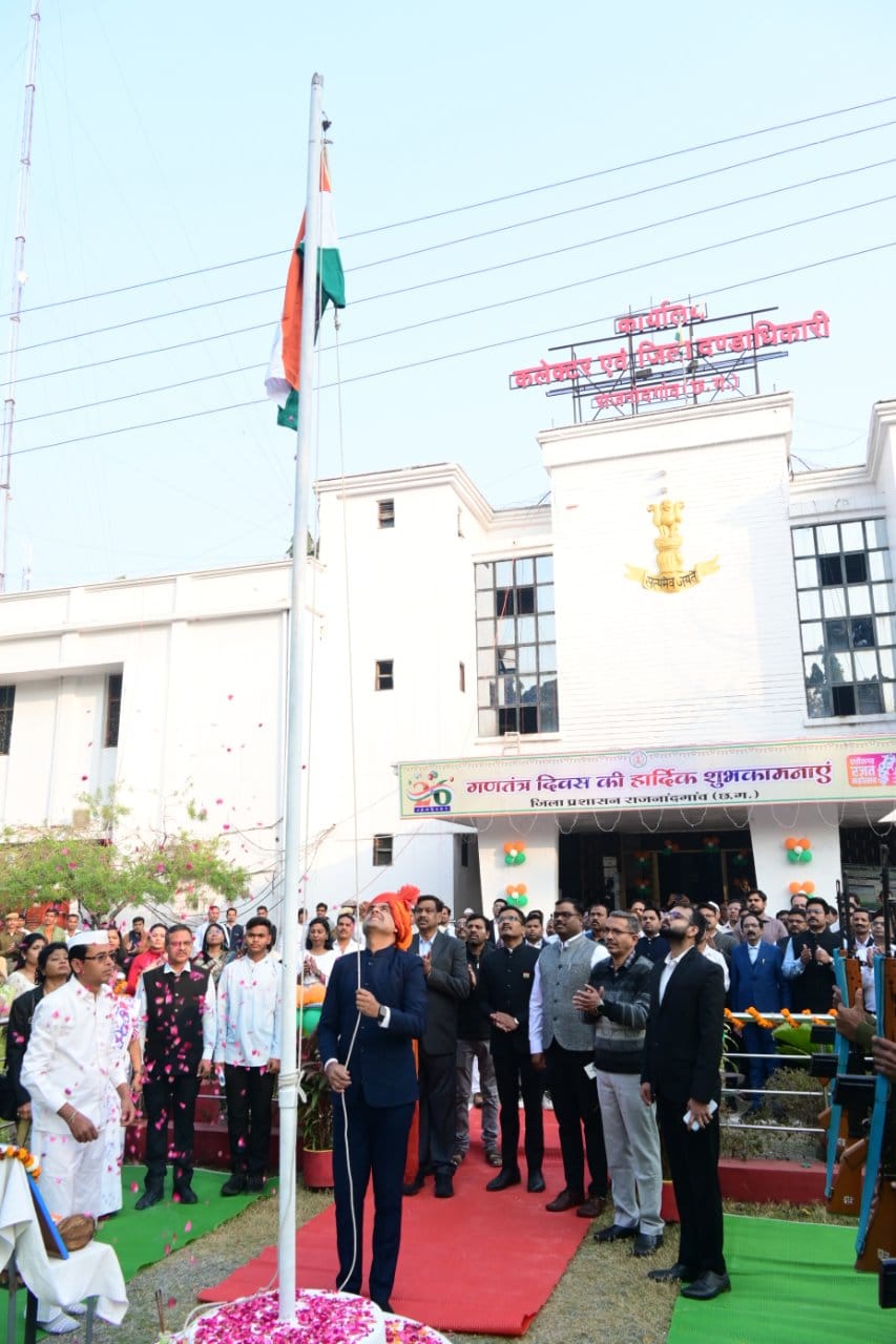 जितेन्द्र यादव कलेक्टर जितेन्द्र यादव ने गणतंत्र दिवस के अवसर पर कलेक्टोरेट परिसर में राष्ट्रीय ध्वज फहराया। इस अवसर पर सामूहिक राष्ट्रगान किया गया। गणतंत्र दिवस के इस ध्वजारोहण कार्यक्रम में सभी विभागों के अधिकारी-कर्मचारी उपस्थित थे। कलेक्टर जितेन्द्र यादव ने कलेक्टोरेट परिसर में स्थापित छत्तीसगढ़ महतारी की प्रतिमा पर माल्यार्पण किया। साथ ही कलेक्टर ने राष्ट्रपिता महात्मा गांधी एवं संविधान निर्माता बाबा साहेब भीमराव अम्बेडकर की प्रतिमा पर पुष्प अर्पित कर उन्हें श्रद्धांजलि दी। कलेक्टर ने अधिकारियों एवं कर्मचारियों को गणतंत्र दिवस की हार्दिक बधाई एवं शुभकामनाएं दी।