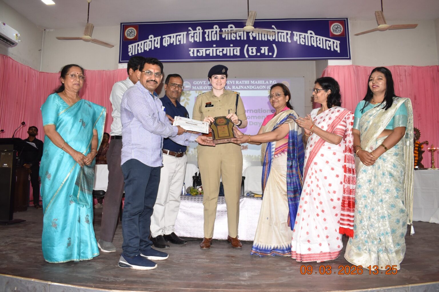 राजनांदगांव। शासकीय कमलादेवी राठी महिला स्नातकोत्तर महाविद्यालय, राजनांदगांव में आईक्यूएसी एवं महिला प्रकोप्ठ के संयुक्त तत्वाधान में अंर्तराष्ट्रीय महिला दिवस का आयोजन दिनांक 09.03.2026 को सुश्री अंकिता शर्मा, पुलिस अधीक्षक राजनांदगांव के आतिथ्य में किया गया।
