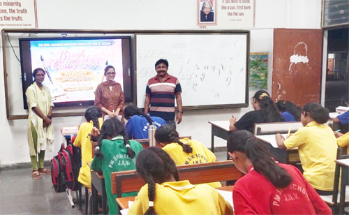 कार्यशाला में संसाधन व्यक्ति श्रीमती ईशा गांधी ने विद्यार्थियों को ब्रश पेन के सही उपयोग, अक्षरों की संरचना और विभिन्न शैली (फॉन्ट) में लेखन की तकनीकों का व्यावहारिक प्रशिक्षण दिया। विद्यार्थियों ने उनके मार्गदर्शन में अभ्यास करते हुए अपनी रचनात्मक प्रतिभा का प्रदर्शन किया।