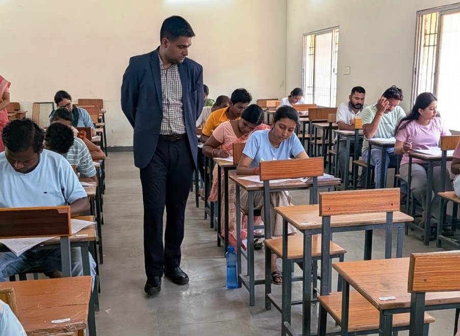 राजनांदगांव। छत्तीसगढ़ व्यावसायिक परीक्षा मंडल द्वारा आयोजित छत्तीसगढ़ राज्य कृषि विपणन (मंडी) बोर्ड अंतर्गत उप निरीक्षक भर्ती परीक्षा का कलेक्टर जितेंद्र यादव ने विभिन्न परीक्षा केंद्रों में पहुंचकर औचक निरीक्षण किया तथा व्यवस्थाओं का जायजा लिया। कलेक्टर ने परीक्षा केंद्रों में प्रवेश व्यवस्थाए अभ्यर्थियों की फ्रिस्किंग, पहचान सत्यापन एवं कक्षों में बैठने की व्यवस्था का निरीक्षण किया। उन्होंने केंद्राध्यक्षों एवं ड्यूटी में तैनात अधिकारियों को परीक्षा प्रक्रिया पूर्णतः पारदर्शी एवं नकल-मुक्त संपन्न कराने निर्देशित किया। साथ ही व्यापम द्वारा जारी निर्धारित दिशा-निर्देशों का कड़ाई से पालन सुनिश्चित करने कहा। उन्होंने समस्त अधिकारियों एवं कर्मचारियों को परीक्षा की गोपनीयता एवं निष्पक्षता बनाए रखते हुए सभी प्रक्रियाओं का गंभीरता से पालन सुनिश्चित करने निर्देशित किया। उन्होंने अभ्यर्थियों से भी अनुशासन बनाए रखने एवं प्रशासन के साथ सहयोग करने की अपील की।