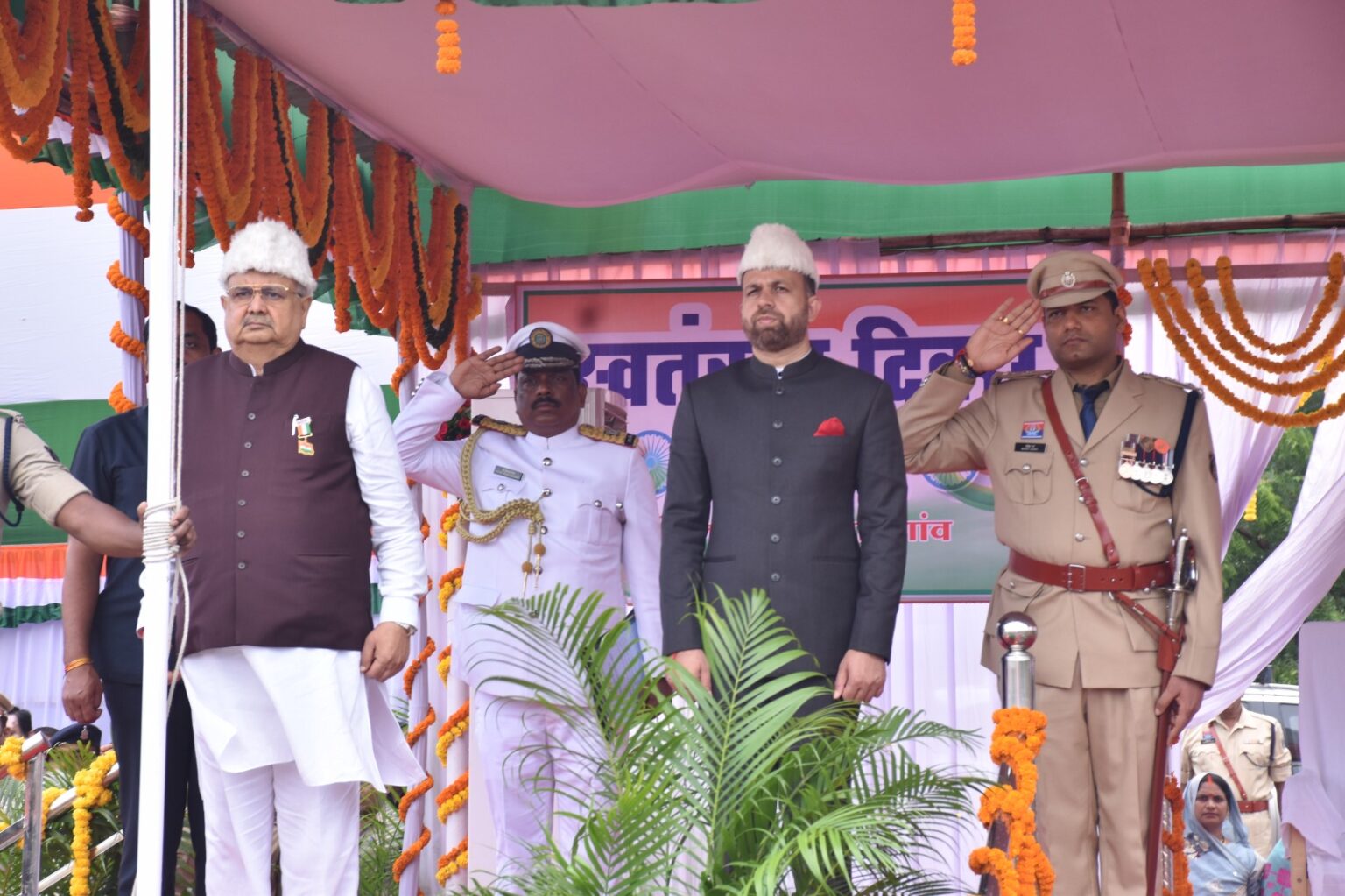 स्वतंत्रता दिवस समारोह के परेड का नेतृत्व परेड कंमाडर नगर पुलिस अधीक्षक श्रीमती वैशाली जैन ने किया। उप निरीक्षक थाना बसंतपुर राकेश पटेल ने परेड टू-आई-सी का दायित्व निभाया। परेड में 16 प्लाटून भाग लिया। जिसमें परेड में जेडी 27 बटालियन आईटीबीपी, 8वीं बटालियन सीएएफ राजनांदगांव, जिला बल, पीटीएस प्लाटून, पीएटीएस महिला प्लाटून, नगर सेना महिला, एनसीसी बालक दिग्विजय महाविद्यालय, एनसीसी बालिका दिग्विजय महाविद्यालय, एनसीसी बालिका कमला कालेज, एनसीसी बालक स्टेट हाई स्कूल, एनसीसी बालिका सर्वेश्वरदास स्कूल, एनसीसी बालिका स्टेट हाई स्कूल, एनसीसी बालिका पीएमश्री सर्वेश्वरदास नगर पालिक स्कूल, एनसीसी नेवल बालिका डॉ. बल्देव प्रसाद मिश्र स्कूल बसंतपुर, स्काउट-गाईड बालिका महारानी लक्ष्मी बाई स्कूल, स्काउट-गाईड बालक स्टेट हाई स्कूल शामिल हुए। स्वतंत्रता दिवस समारोह में पदुमलाल पुन्नालाल बख्शी स्वामी आत्मानंद उत्कृष्ट विद्यालय राजनांदगांव, एकलव्य आदर्श आवासीय विद्यालय पेण्ड्री, गायत्री विद्यापीठ, युगांतर पब्लिक स्कूल राजनांदगांव, पीएमश्री जवाहर नवोदय विद्यालय डोंगरगढ़, स्वामी आत्मानंद उत्कृष्ट विद्यालय डोंगरगांव के स्कूली छात्र-छात्राओं द्वारा देश भक्तिपूर्ण गीतों पर सांस्कृतिक कार्यक्रमों की मोहक प्रस्तुति दी गई। जिला पंचायत अध्यक्ष श्रीमती किरण वैष्णव, अध्यक्ष जिला सहकारी केन्द्रीय बैंक सचिन बघेल, उपाध्यक्ष जिला पंचायत श्रीमती किरण साहू, समाजसेवी कोमल सिंह राजपूत, संतोष अग्रवाल, सौरभ कोठारी, खूबचंद पारख, भरत वर्मा, पद्म पुखराज बाफना, पुलिस महानिरीक्षक अभिषेक शांण्डिल्य, वनमंडलाधिकारी आयुष जैन, मुख्य कार्यपालन अधिकारी जिला पंचायत सुश्री सुरूचि सिंह, अपर कलेक्टर सीएल मारकण्डेय, अपर कलेक्टर प्रेम प्रकाश शर्मा, अतिरिक्त पुलिस अधीक्षक राहुल देव शर्मा, नगर निगम आयुक्त अतुल विश्वकर्मा, एसडीएम राजनांदगांव खेमलाल वर्मा सहित अन्य जनप्रतिनिधि, अधिकारी, कर्मचारी एवं बड़ी संख्या में नागरिक उपस्थित थे। कार्यक्रम का संचालन कमल किशोर श्रीवास्तव ने किया।