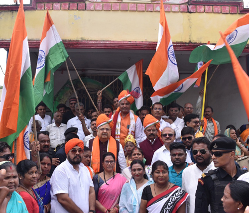 राजनांदगांव। विधानसभा अध्यक्ष डॉ. रमन सिंह ने आजादी के अमृत महोत्सव के अंतर्गत आजाद चौक मोतीपुर में भव्य तिरंगा यात्रा को हरी झंडी दिखाकर रवाना किया। स्वतंत्रता दिवस के अवसर पर आजादी का अमृत महोत्सव एवं हर घर तिरंगा, हर घर स्वच्छता, स्वतंत्रता का उत्सव, स्वच्छता के संग थीम पर उल्लास और खुशी के साथ आजादी के उत्सव को मनाने के लिए बड़ी संख्या में भूतपूर्व सैनिक और नगरवासियों द्वारा तिरंगा यात्रा निकाली गई। देशभक्ति की भावना को नागरिकों तक पहुंचाने और स्वच्छता के प्रति जनचेतना को सशक्त बनाने के लिए भारत माता की जयकारे के साथ तिरंगा यात्रा निकाली गई। इस अवसर पर महापौर मधुसूदन यादव, अध्यक्ष जिला सहकारी केन्द्रीय बैंक सचिन बघेल, समाजसेवी कोमल सिंह राजपूत, सौरभ कोठारी, भावेश बैद, एसडीएम राजनांदगांव खेमलाल वर्मा सहित अन्य जनप्रतिनिधि एवं नगरवासी उपस्थित थे।