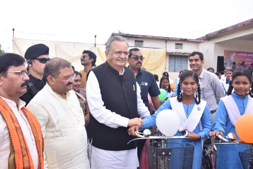 राजनांदगांव। छत्तीसगढ़ रजत महोत्सव के अवसर पर विधानसभा अध्यक्ष डॉ. रमन सिंह ने राजनांदगांव विकासखंड के हायर सेकेण्डरी स्कूल ग्राम सोमनी में सरस्वती सायकल योजना अंतर्गत 63 बालिकाओं को निःशुल्क सायकल का वितरण किया तथा उन्हें बधाई एवं शुभकामनाएं दी। उन्होंने बालिकाओं से बातकर उनके पढ़ाई के संबंध में जानकारी ली। उन्होंने बालिकाओं को बालिकाओं को मन लगाकर पढ़ाई करने के लिए प्रोत्साहित किया। निःशुल्क सायकल मिलने पर बालिकाओं में खुशी एवं उत्साह दिखाई दिया। बालिकाओं ने बताया कि सायकल मिलने पर अब उनकों स्कूल आने-जाने में सुविधा होगी। इस अवसर पर जिला पंचायत अध्यक्ष श्रीमती किरण वैष्णव, जिला पंचायत सदस्य श्रीमती देवकुमारी साहू, कोमल सिंह राजपूत, राजा माखीजा, सुमीत उपाध्याय, भावेश बैद एवं मुख्य कार्यपालन अधिकारी जिला पंचायत सुश्री सुरूचि सिंह, जिला शिक्षा अधिकारी प्रवास सिंह बघेल, जिला समन्वयक साक्षरता सतीश ब्यौहारे एवं अन्य जनप्रतिनिधि, अधिकारी एवं बड़ी संख्या में विद्यार्थी रहे।
