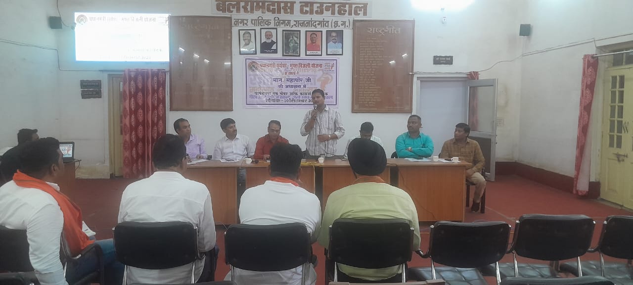 राजनांदगांव। नगर निगम के टाउन हॉल में बुधवार को प्रधानमंत्री सूर्यघर मुफ्त बिजली योजना और गंभीर बीमारियों के लिए नि:शुल्क स्वास्थ्य शिविर को लेकर कार्यशाला आयोजित की गई। इस दौरान निगम आयुक्त अतुल विश्वकर्मा और निगम अध्यक्ष टोपेन्द्र सिंह पारस वर्मा की मौजूदगी में पार्षदों और चैम्बर ऑफ कॉमर्स के पदाधिकारियों को योजनाओं की विस्तृत जानकारी दी गई।