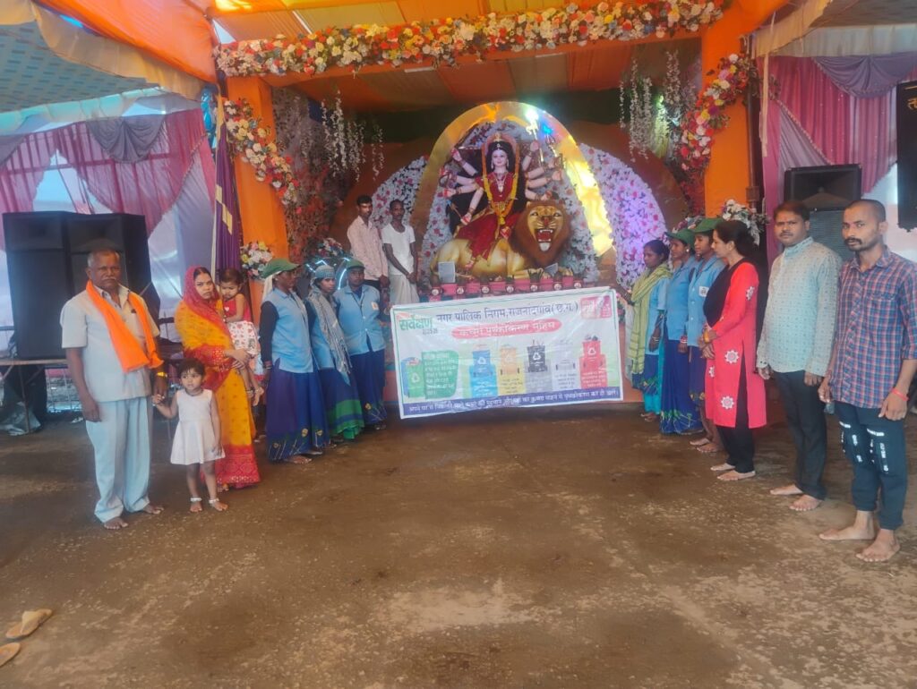 राजनांदगांव। स्वच्छ भारत अभियान के तहत नगर निगम ने स्वच्छोत्सव 2025 की तैयारियों को लेकर दुर्गा पूजा पंडालों में स्वच्छता अभियान तेज कर दिया है। महापौर मधुसूदन यादव और आयुक्त अतुल विश्वकर्मा के निर्देश पर निगम की स्वच्छता टीम और स्वच्छता दीदियों द्वारा शहर के विभिन्न दुर्गा पंडालों में जाकर साफ-सफाई की जा रही है और समितियों को स्वच्छता को लेकर जागरूक किया जा रहा है।