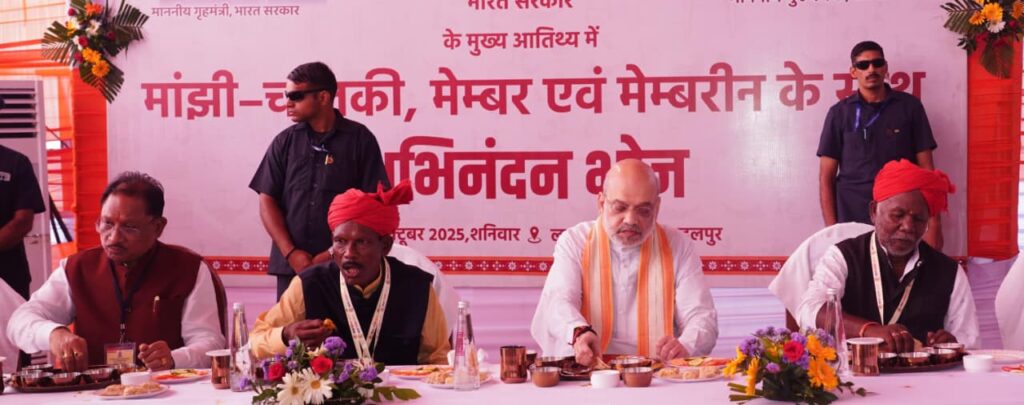 रायपुर। केन्द्रीय गृहमंत्री श्री अमित शाह एवं मुख्यमंत्री श्री विष्णु देव साय आज जगदलपुर के लालबाग मैदान में बस्तर दशहरा पर्व से जुड़े मांझी-चालकी, मेम्बर एवं मेम्बरीन के सम्मान में आयोजित अभिनंदन भोज में शामिल हुए। केंद्रीय गृह मंत्री श्री अमित शाह ने अभिनंदन भोज में परोसे गए आदिवासी समाज के पारम्परिक व्यंजनों की सराहना करते हुए कहा कि ये पारम्परिक व्यंजन बस्तर की संस्कृति, परंपरा और आदिवासी जीवन मूल्यों का अनूठा स्वाद प्रस्तुत करते हैं।