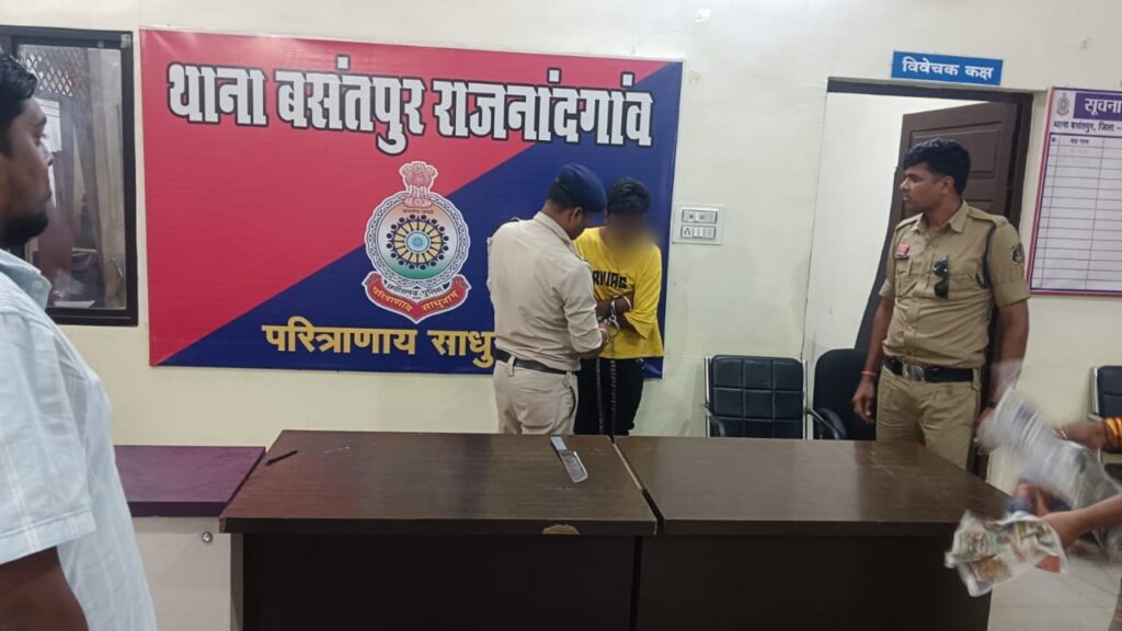 सूचना मिलते ही बसंतपुर थाने की टीम तत्काल मौके पर पहुंची और आरोपी विकास यदु पिता शिव कुमार यदु उम्र 40 वर्ष, निवासी चौखडियापारा, राजनांदगांव को गिरफ्तार किया। तलाशी के दौरान उसके पास से एक नग धारदार चाकू बरामद किया गया।