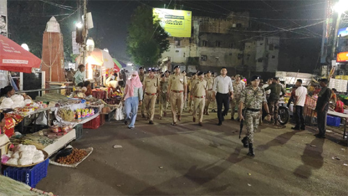 शहर के प्रमुख चौक-चौराहों, बाजारों, हाट-बाजार एवं भीड़भाड़ वाले स्थानों पर फ्लैग मार्च के साथ-साथ फिक्स प्वाइंट ड्यूटी भी लगाई गई है। पुलिस जवान लगातार निगरानी रख रहे हैं।